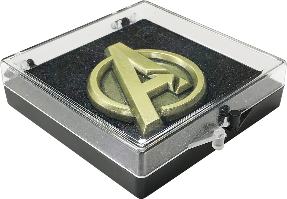 「アベンジャーズ」マークのピンバッジ。