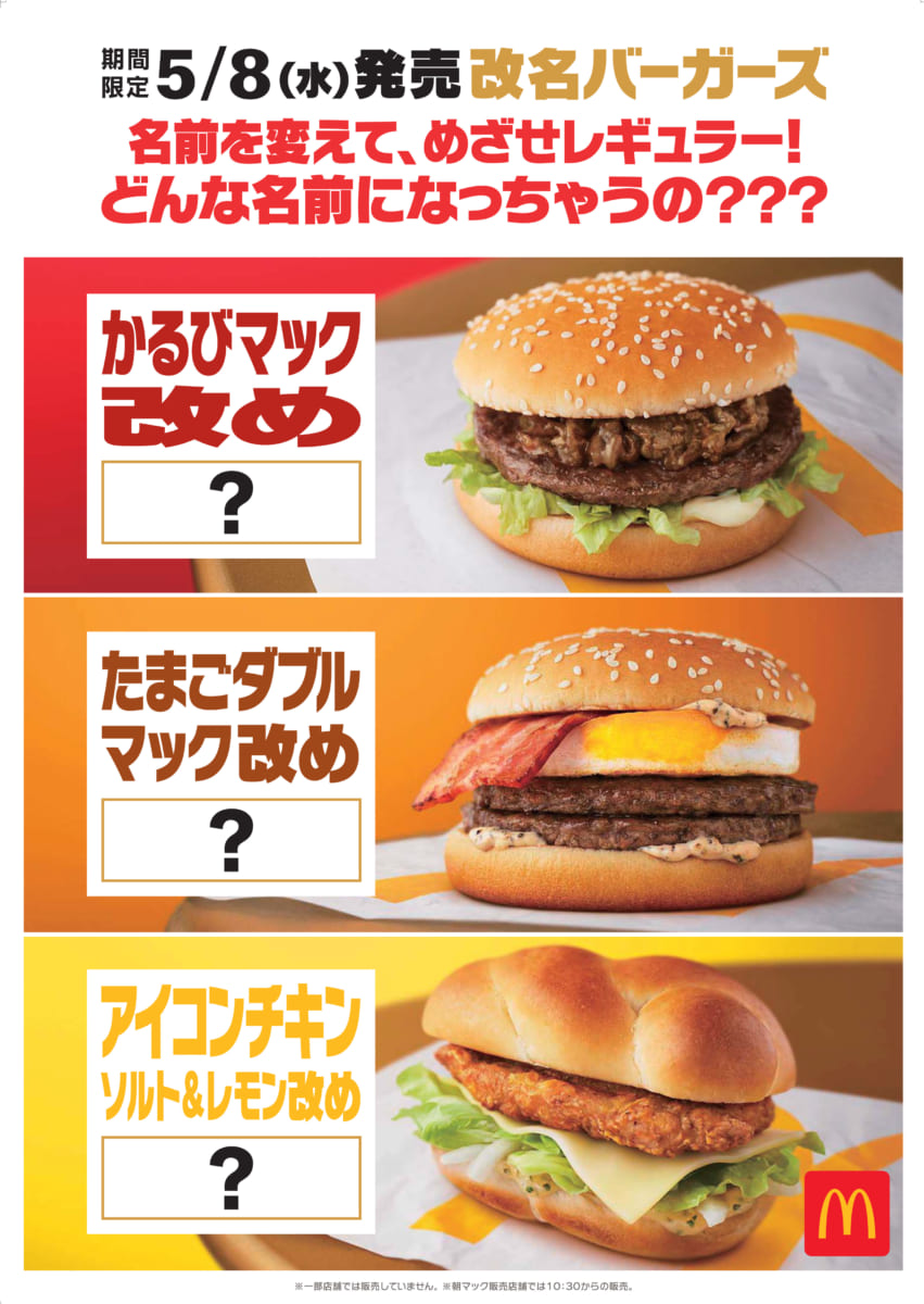 名前を変えて生き残りを目指す3種類に加え、朝マックでも「たまごダブルマック」のマフィンが発売されます。