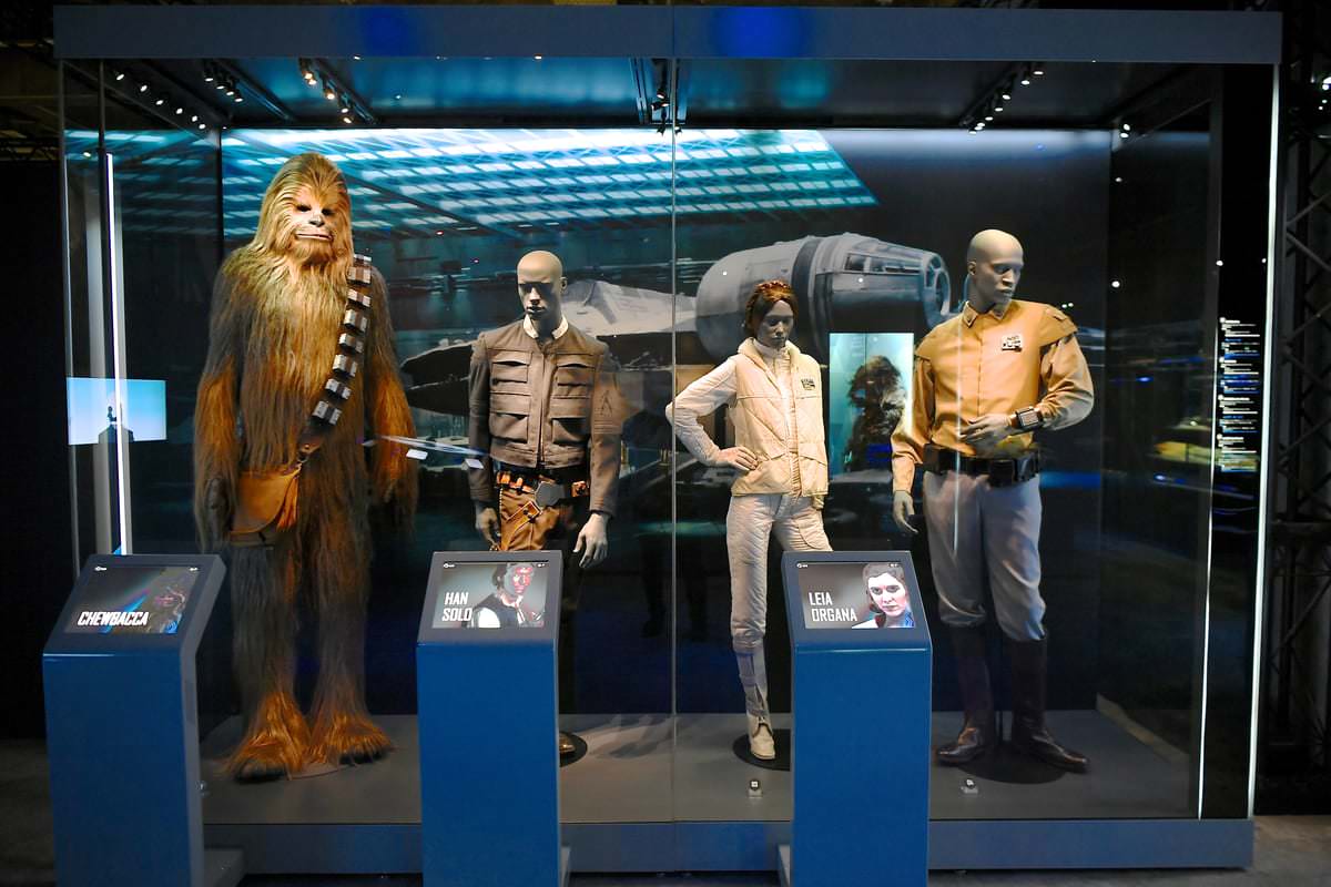 「チューバッカ」や「ハン・ソロ」「プリンセス・レイア」「ランド・カルリジアン」の衣装なども展示。