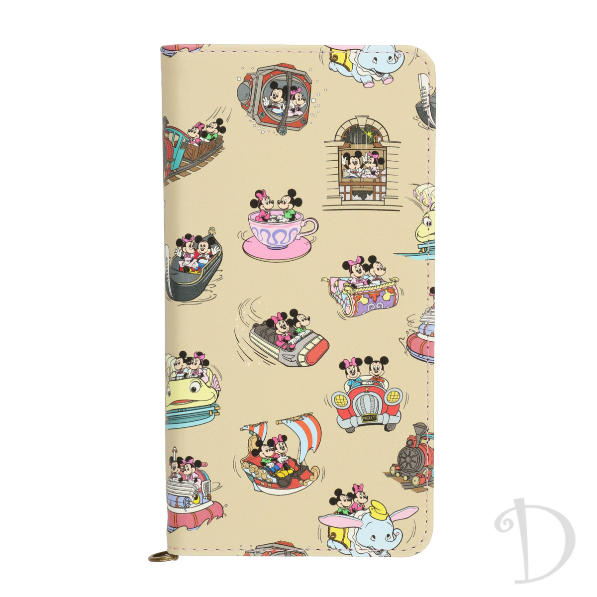 「ミッキーマウス」と「ミニーマウス」が、東京ディズニーランドや東京ディズニーシーのアトラクションを楽しんでいる様子がデザインされています。