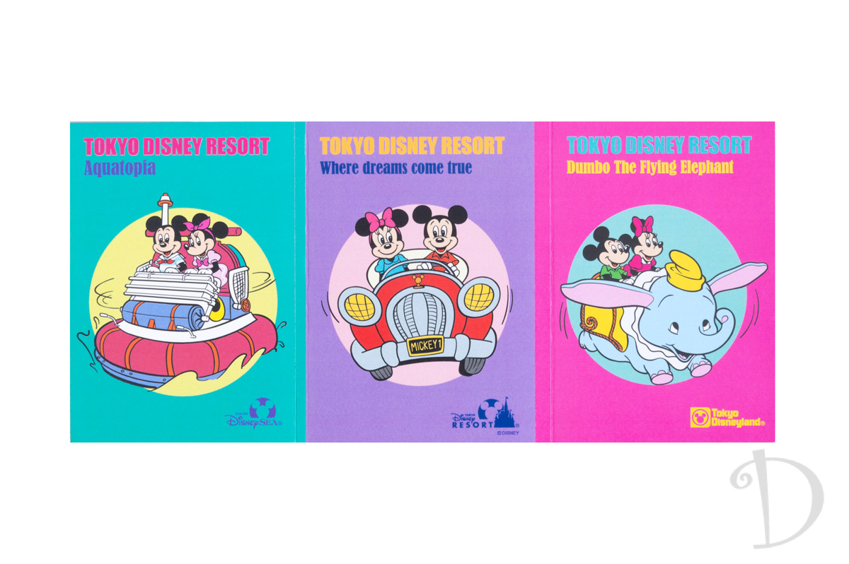 「空飛ぶダンボ」、「アクアトピア」、ドライブをしている「ミッキーマウス」と「ミニーマウス」の3本セットです☆