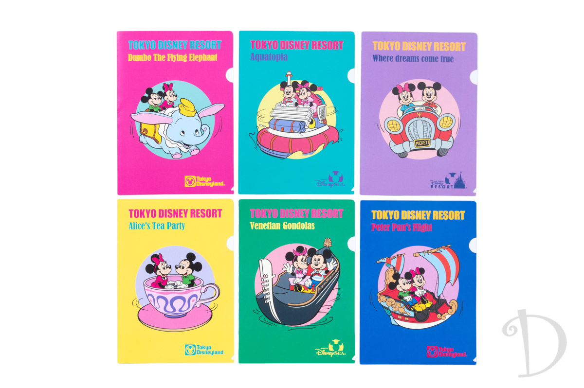 「タワー・オブ・テラー」、「ビッグサンダー・マウンテン」、「海底2万マイル」、「ジャスミンのフライングカーペット」、「スペース・マウンテン」、「フランダーのフライングフィッシュコースター」の6つのアトラクションの絵柄です。