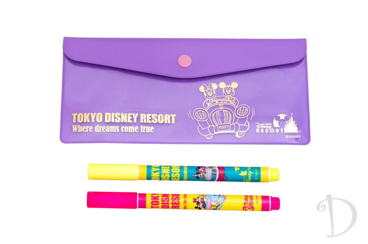 紫色のケースと蛍光ピンクと蛍光イエローのペンがセットになっています。