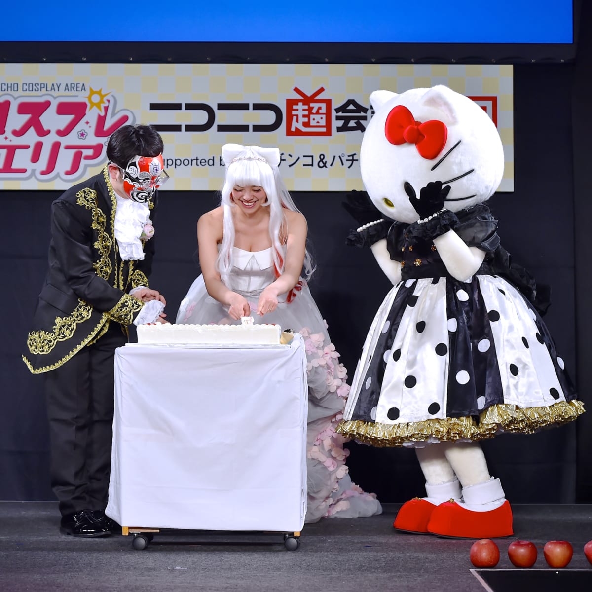 「ニコニコ超会議2019」にて晴れの日を迎える二人のために、2019年に「45周年」を迎えるハローキティがお祝いに駆け付けました☆