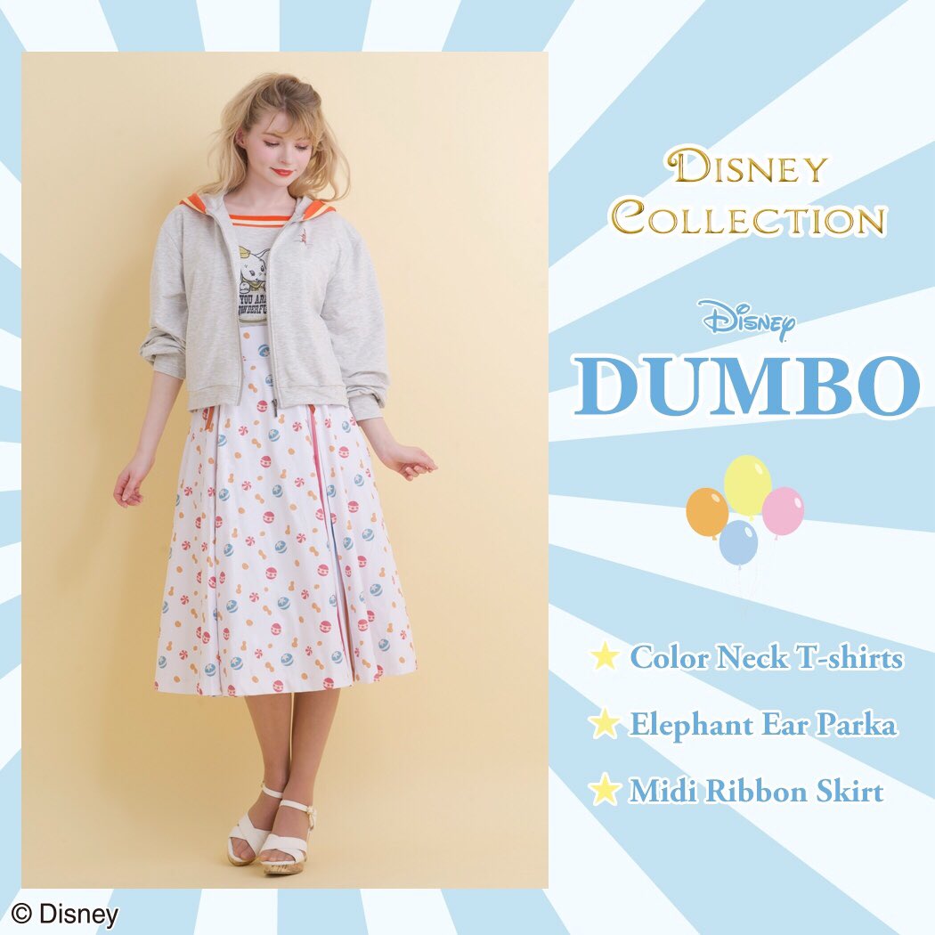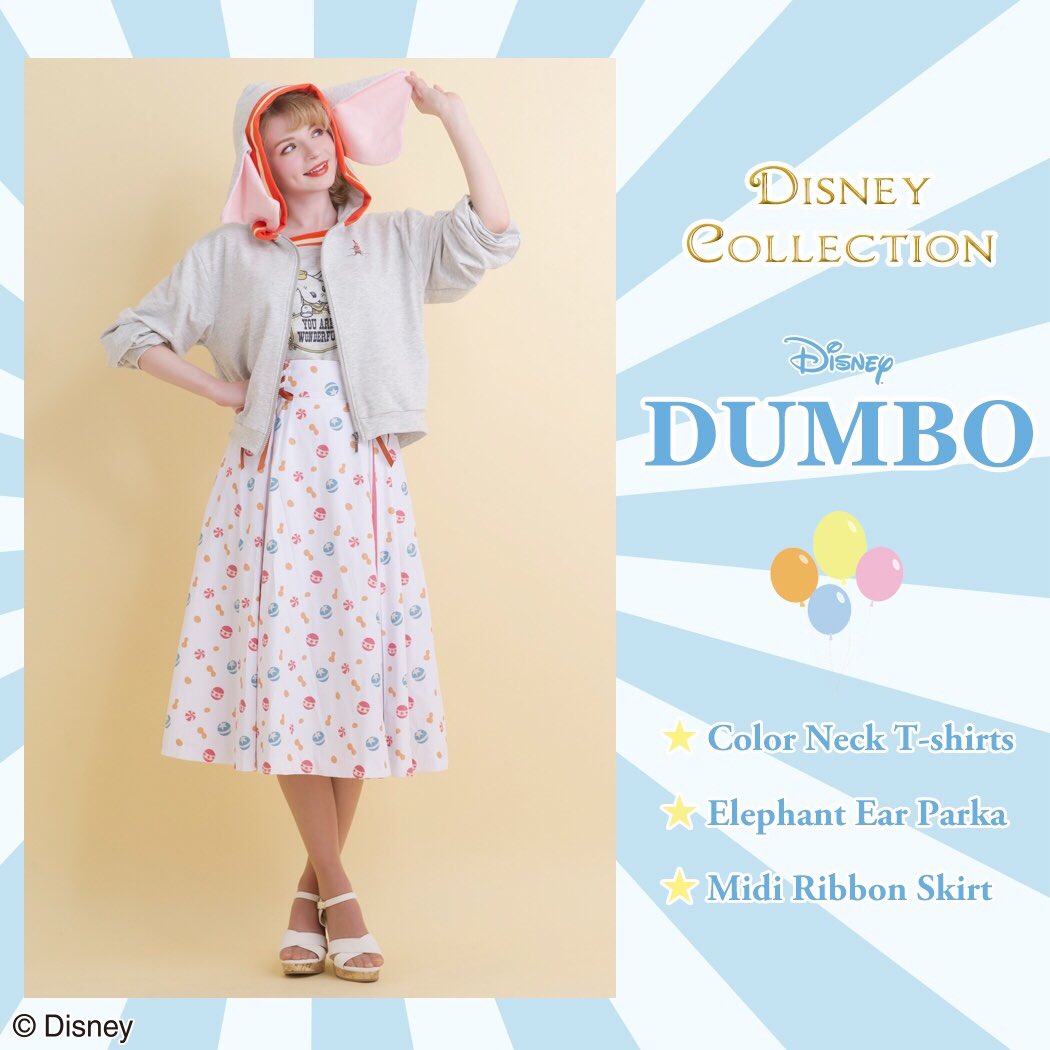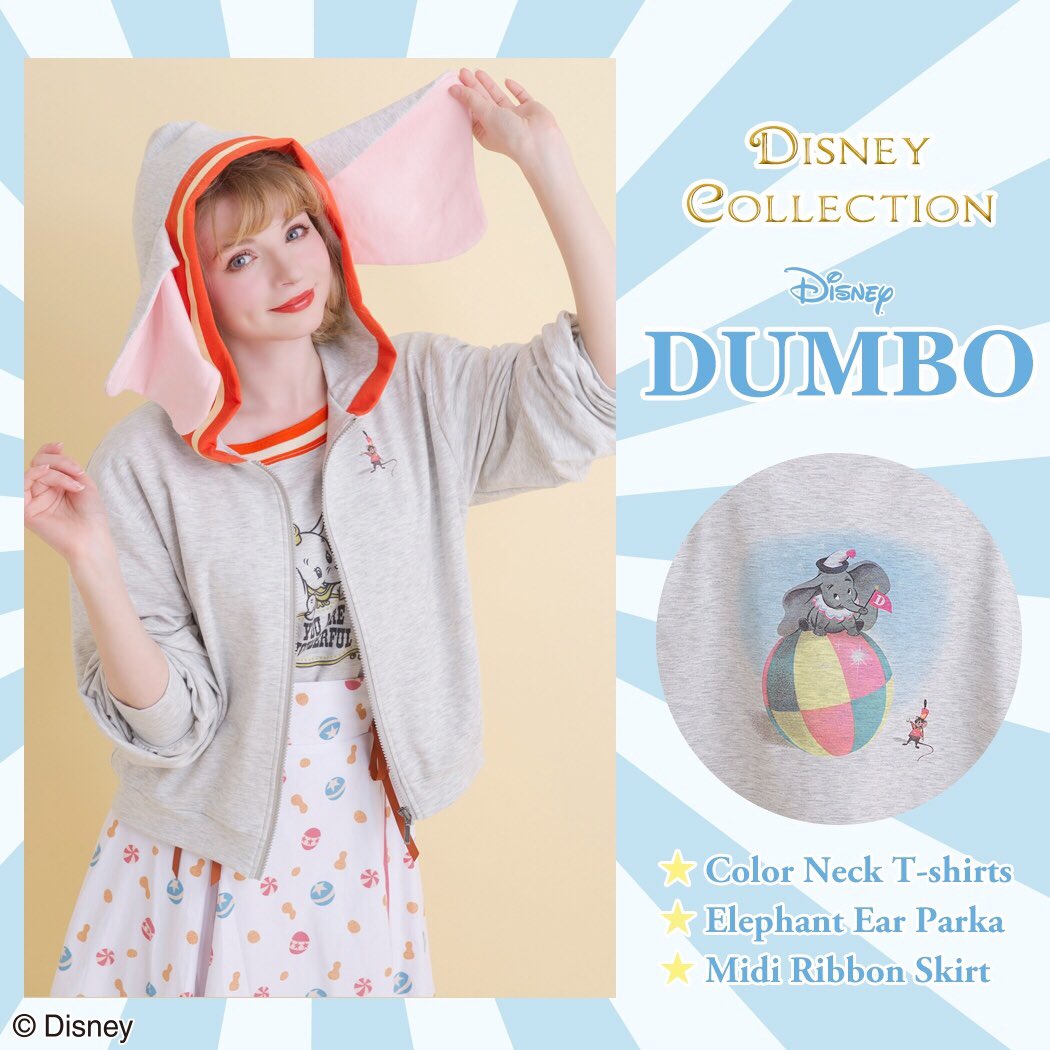 シークレットハニー ディズニーコレクション「カラーネック Tシャツ(ダンボver.)」と「エレファント・イヤー パーカー(ダンボver.)」、「ミディ丈リボンスカート(ダンボver.)」は、シークレットハニー全店にて2019年5月2日(木)より、予約販売スタートです☆