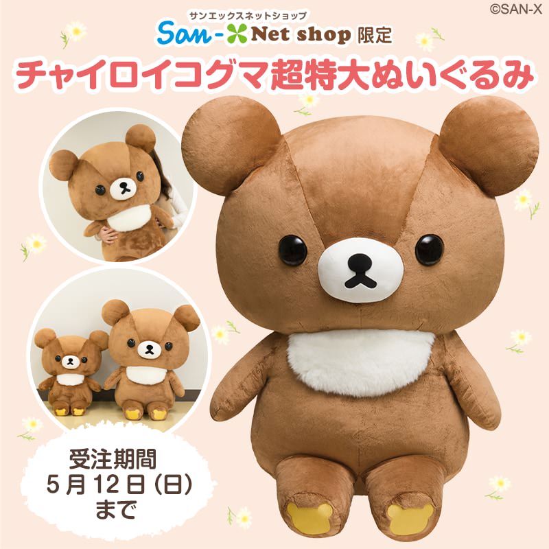 「チャイロイコグマ超特大ぬいぐるみ」は、サンエックスネットショップにて、2019年5月12日(日)まで注文受付中です☆