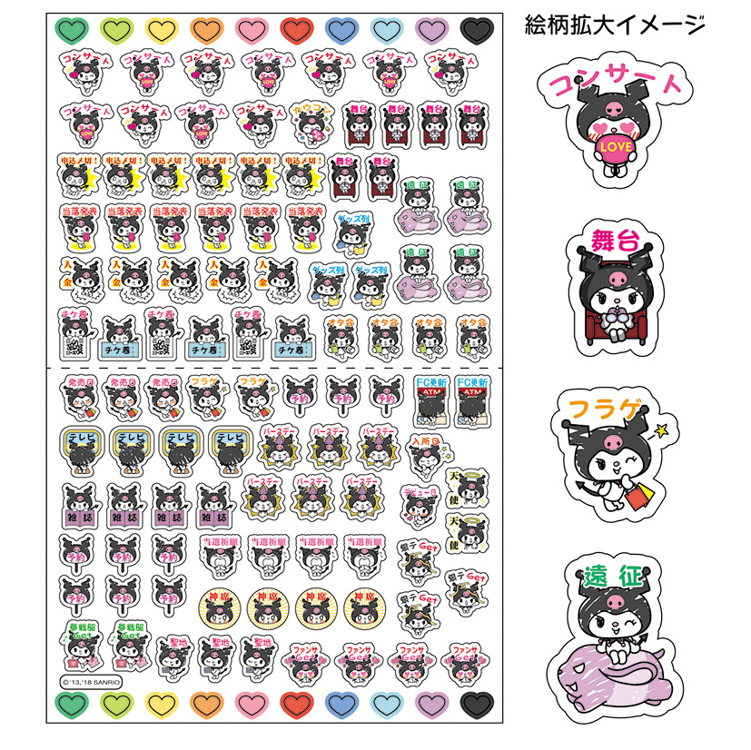 「コンサート」、「フラゲ」、「遠征」など、アイドル活動のスケジュールを記録するのに便利なシールが勢ぞろい!