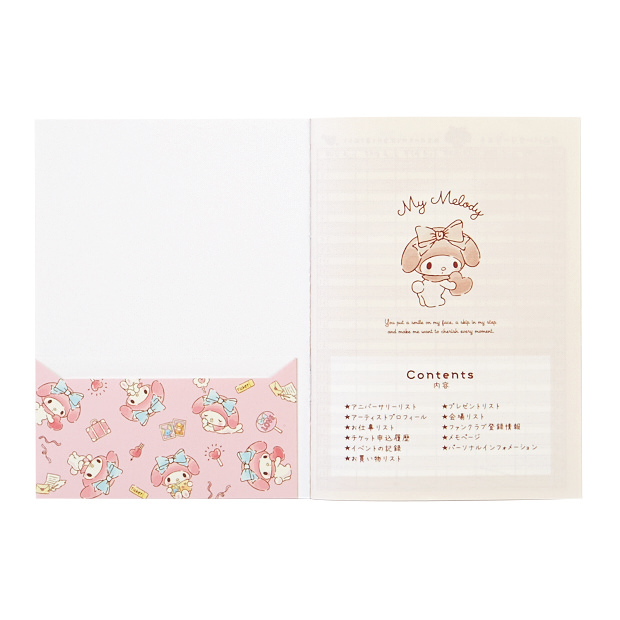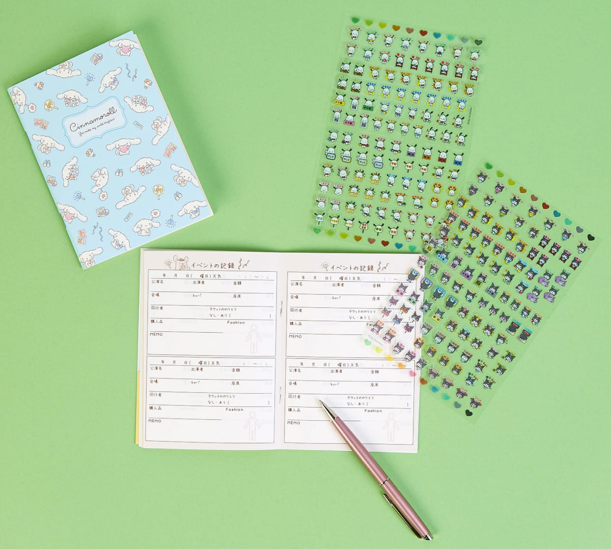 また、クリアファイルホルダー、会報ファイル、チケットホルダー、記録ノートには、アイドルファンの必須アイテム(チケット、ブロマイド、うちわ、ペンライト、ファンレター、銀テープなど)のイラストが描かれ、サンリオキャラクター自身がアイドルのファンになったかのようで、思わず共感したくなるデザインになっています。