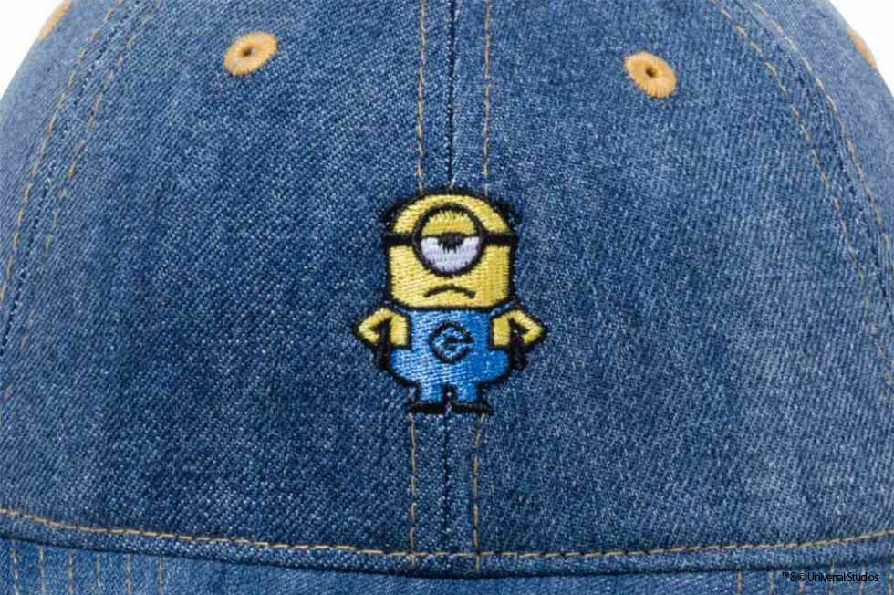 シルエットや特徴的な一つ目が刺繍されていたり、イメージカラーのイエロー、ブルーが使用されたキャップは、「ミニオン」らしさ満載。