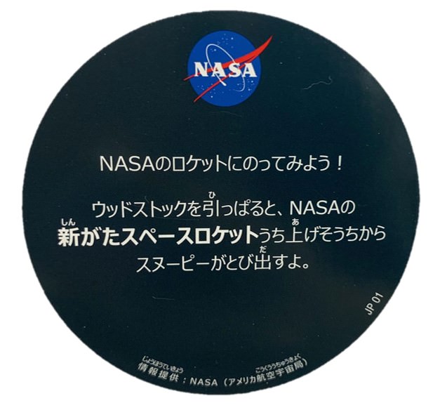 「スヌーピーとうちゅうはっけん」のおもちゃには、それぞれのおもちゃのテーマに関連した宇宙の知識が書いてある「うちゅうのお話カード」が付属。