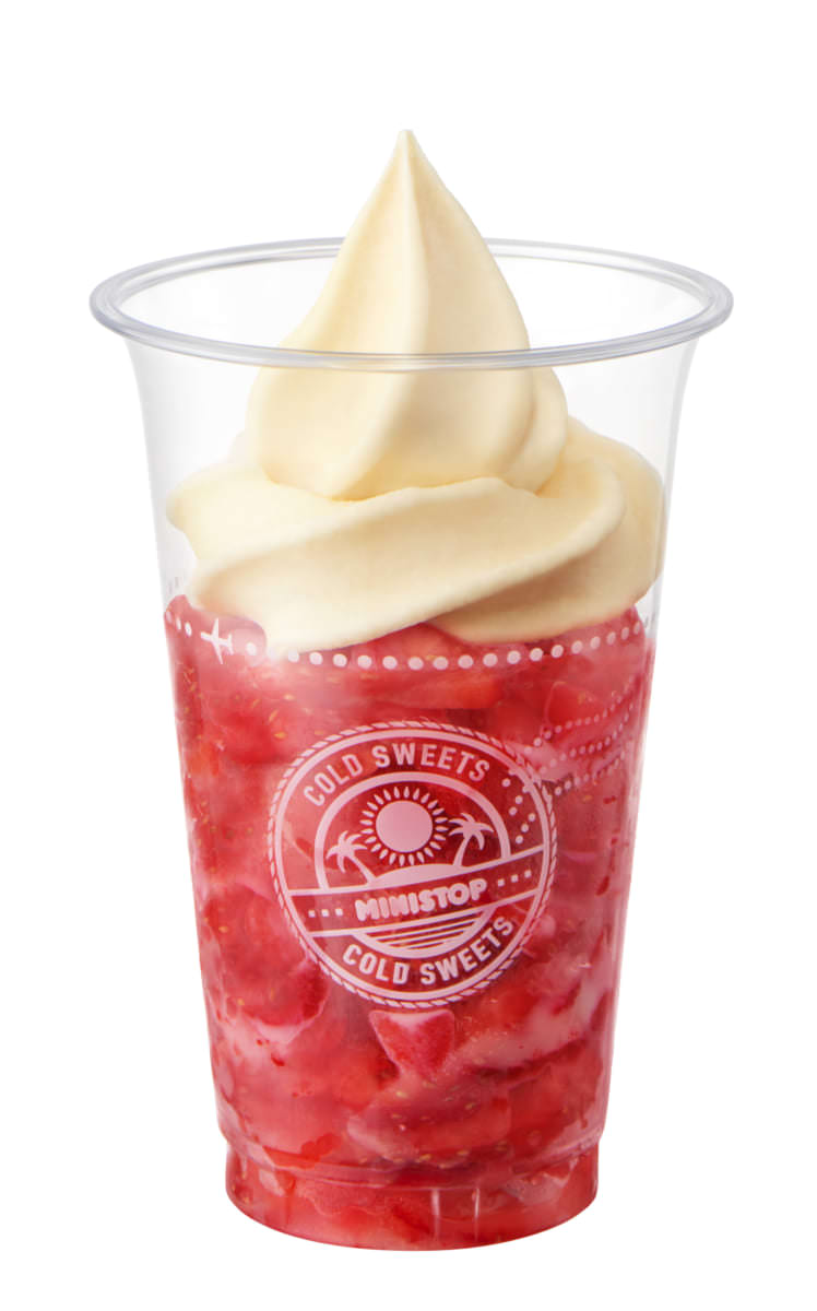いちごはほどよい酸味のものを選び、ぐっと深みと甘みを増した練乳風味のシロップを合わせ、なめらかな「ソフトクリーム バニラ」をトッピング。