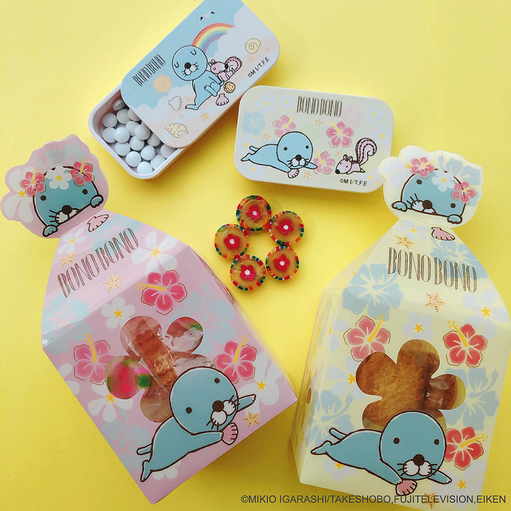 へんな事や不思議な事に興味を示してしまうラッコの子供「ぼのぼの」や、そのお友達の「シマリス」くんなどが描かれたキュートなお菓子やポーチが揃います。