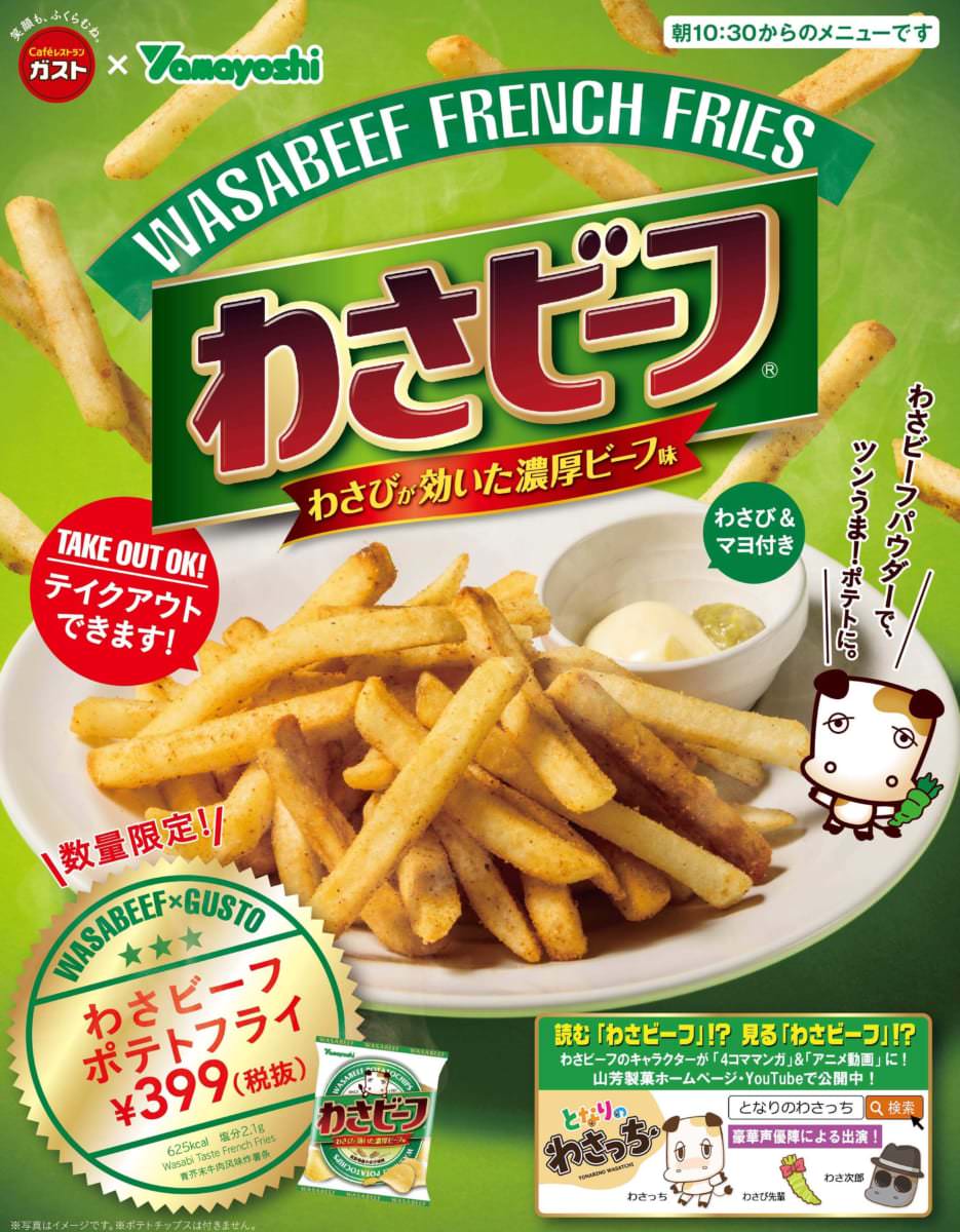 ファミリーレストラン 「ガスト」から、山芳製菓の人気商品「わさビーフ」とのコラボレーションメニュー「わさビーフポテトフライ」が登場!