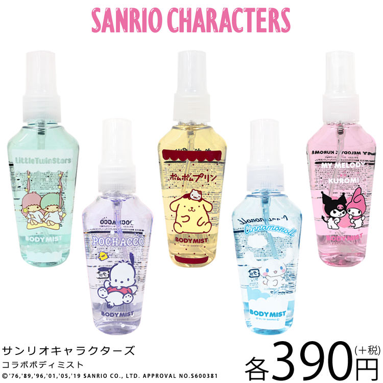 そのコスメシリーズから、「サンリオキャラクターズ」デザインのボディミスト5種が登場しました!