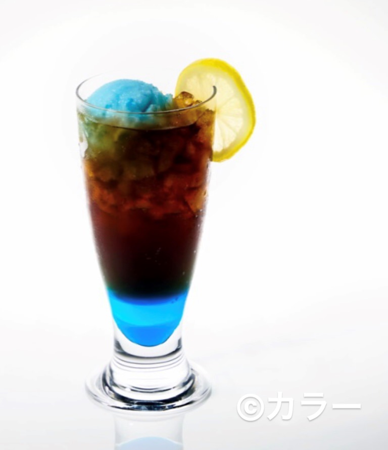 ブルーキュラソーとコーラの不思議な組み合わせで、謎めいた「カヲル」がイメージされています。