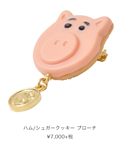 「ハム」をモチーフにしたシュガークッキー型のブローチ。