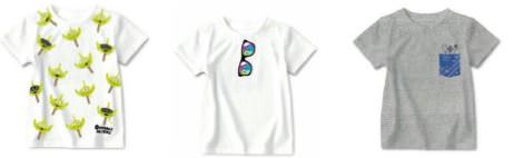 キッズサイズは、『トイ・ストーリー』に登場する「エイリアン」の総柄をはじめ、サングラスやポケットなどのユニークなプリントが施されたTシャツがラインナップ!