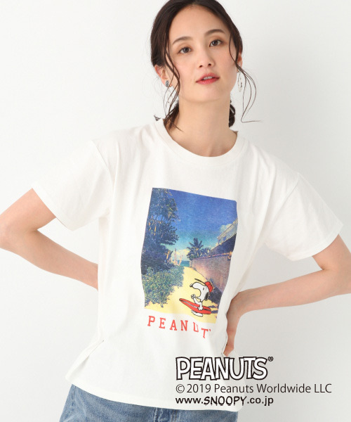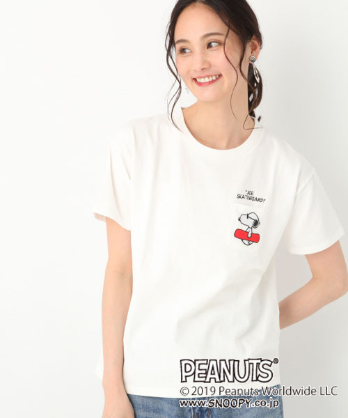 キャラディネート初心者でも挑戦しやすい、シンプルなシルエットの「スヌーピー」Tシャツ。