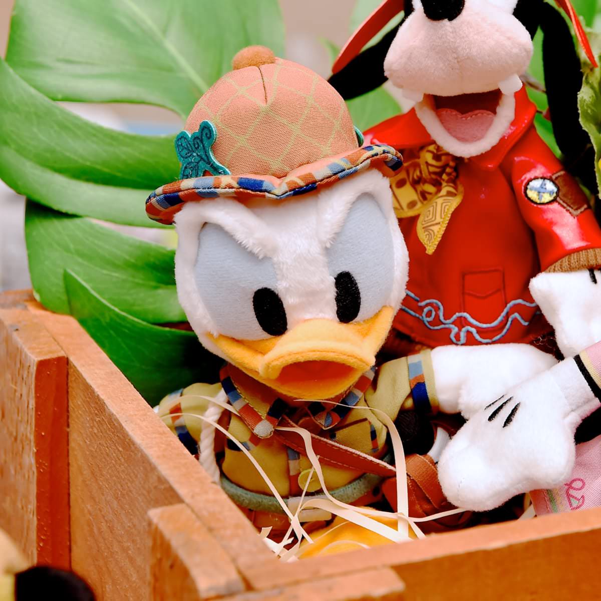 パイロット姿のグーフィーがくつろいでいると、冒険家のミッキーマウス、ミニーマウス、ドナルドダックがやってきます。