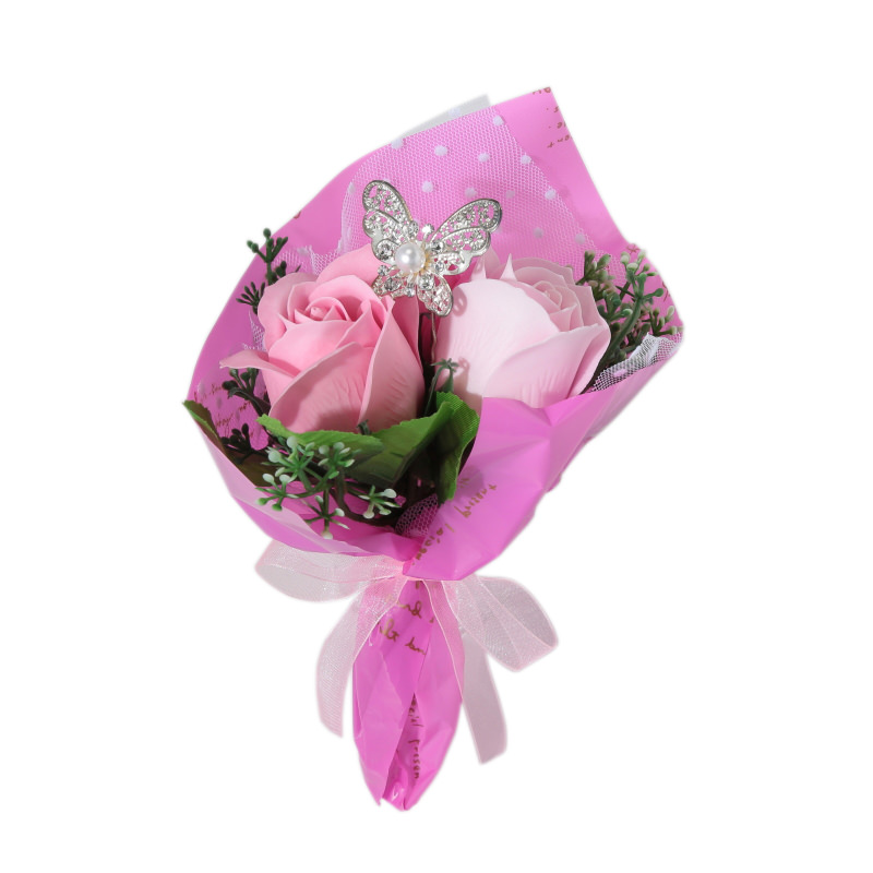 ピンクのアレンジメントがかわいい、バラの形のソープフラワーです。