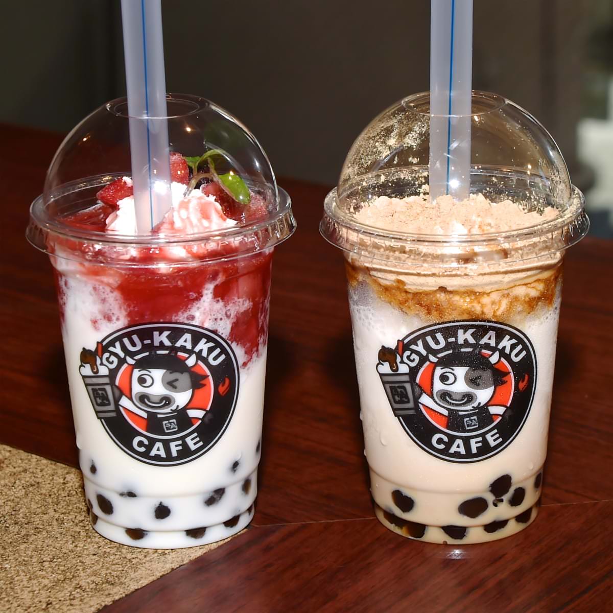 牛角タピオカ(黒蜜きなこラテ/いちごみるく)