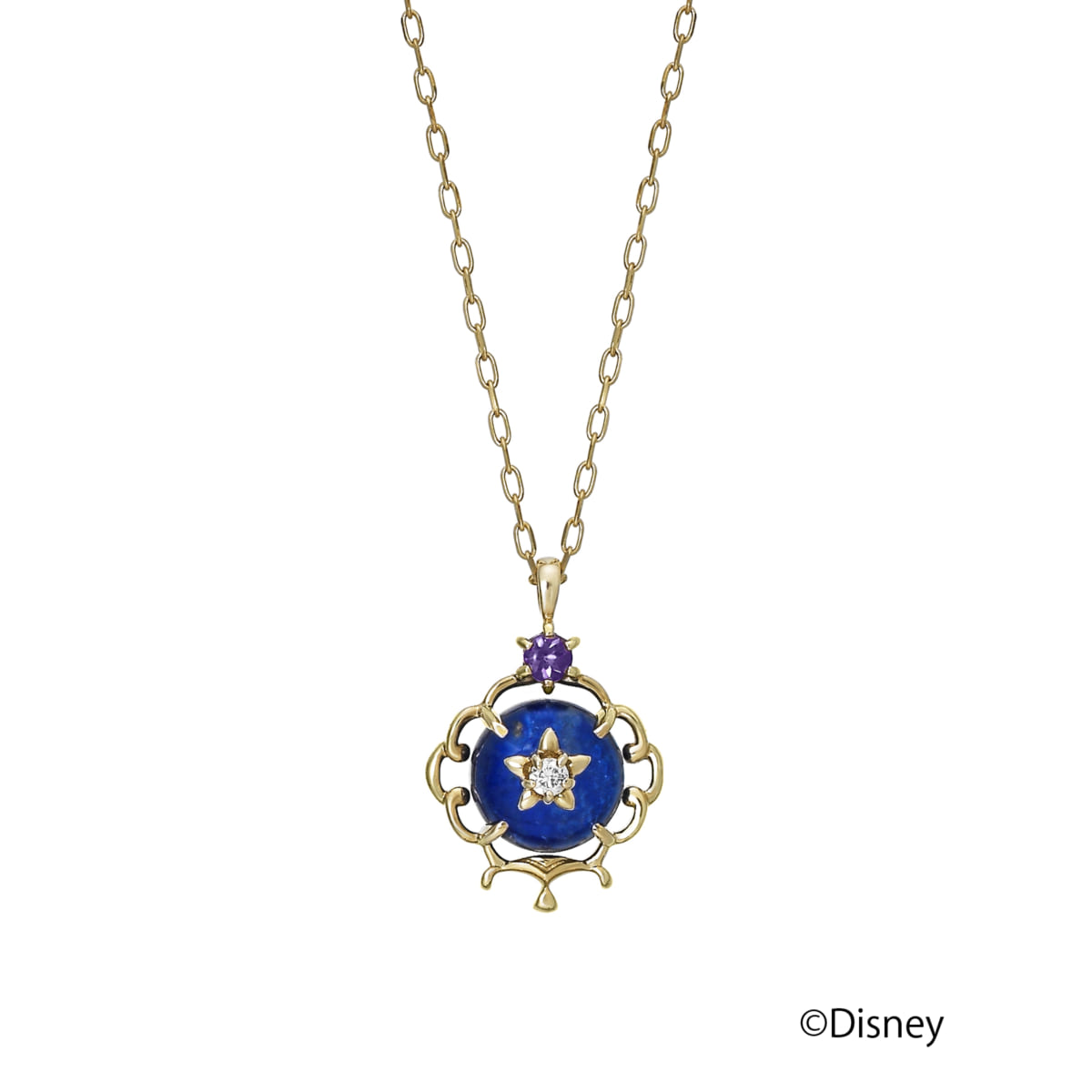 全体をジャスミンのイメージカラーでまとめてあり、アラジンの世界観溢れるネックレスとなっています☆