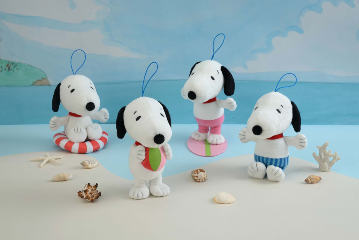 サーフィンを楽しんだり、浮輪で浮かぶキュートな「スヌーピー」4種が揃います。