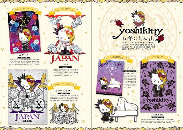 そのほか、サンリオピューロランドで撮りおろされた「yoshikitty」グラビア「yoshikittyに誘われて・・・」、誕生当時から現在に至るまでの10年分のデザインを紹介する企画「yoshikitty10年の思い出」を掲載。