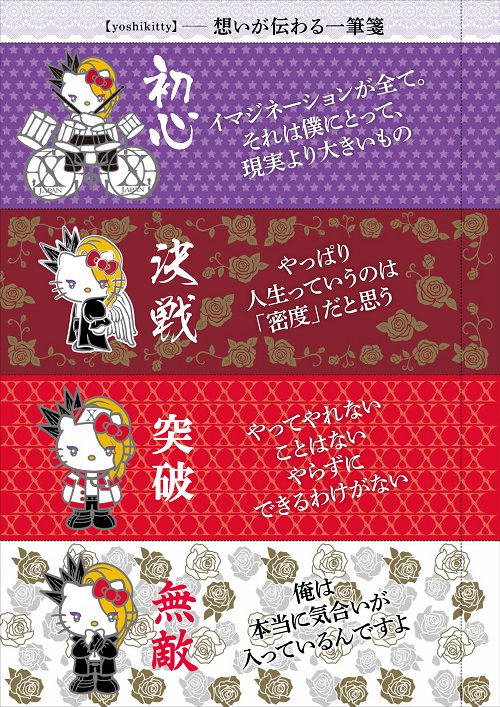 「想いが伝わる一筆箋」では「yoshikitty」のイラストと共に「YOSHIKI」氏の名言をプリント。
