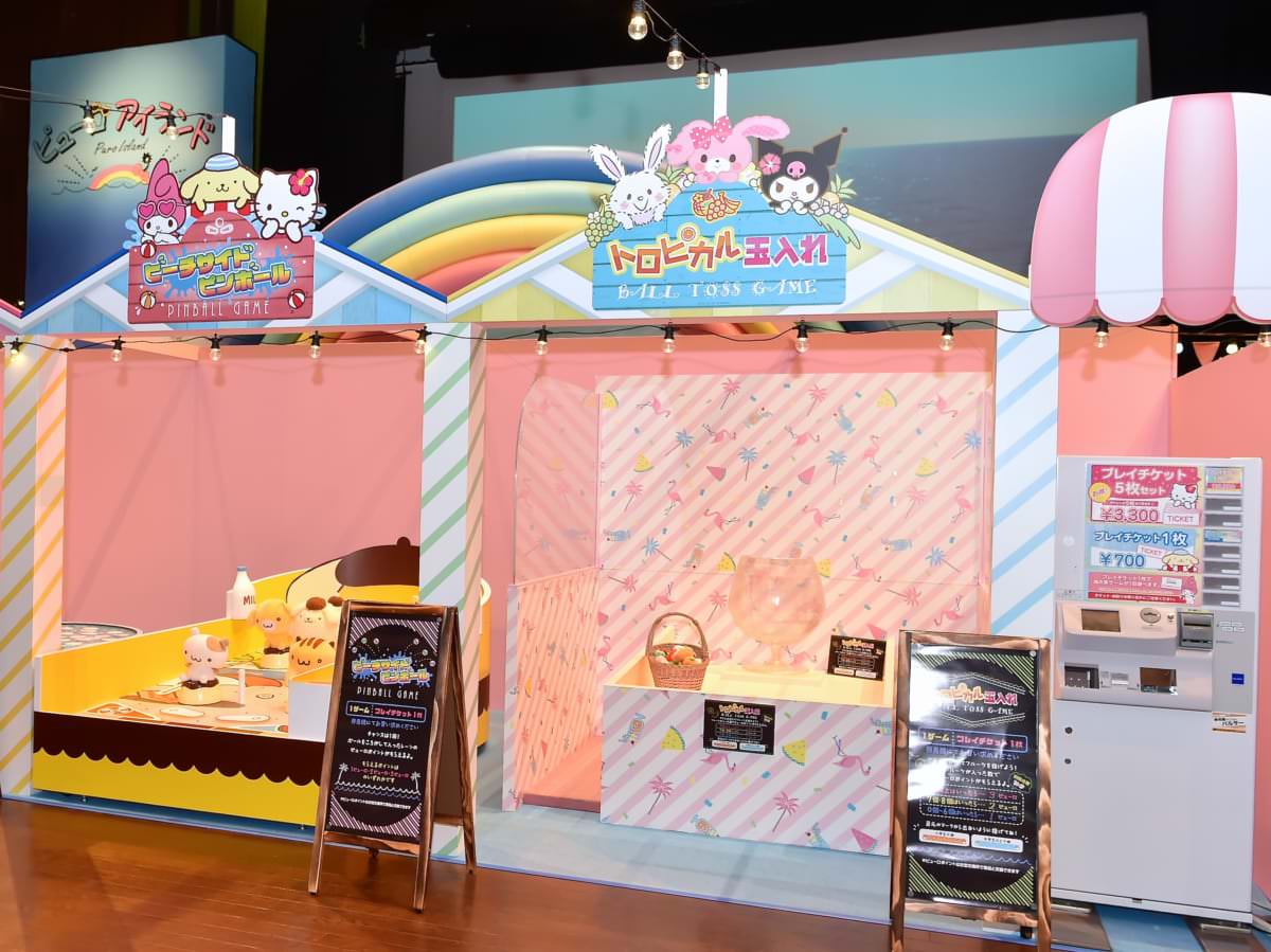 日焼けした「ハローキティ」や「ピューロ夏フェスLIVE!!!!」で登場するコスチュームを着たキャラクターなど、ここだけで楽しめるスペシャルグリーティングや、魚釣りや玉入れ、ピンボールに挑戦できる「海の家ゲーム」が楽しめます。