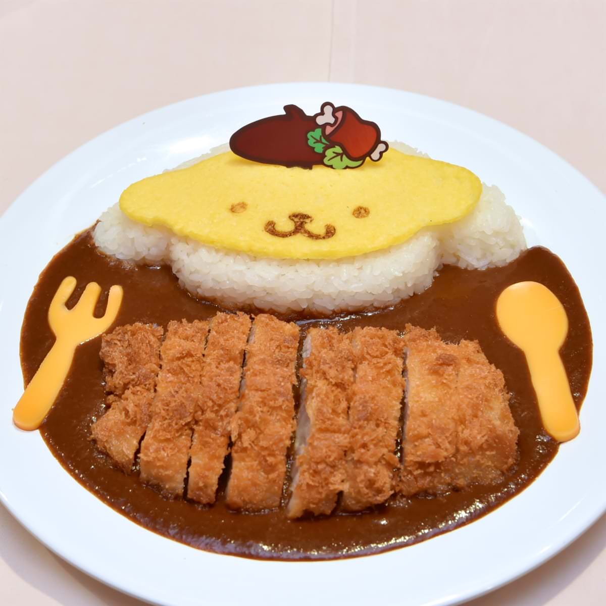 「ポムポムプリン」のお顔をあしらったライスが付いた「ぷくぷくプリンのカツカレー」