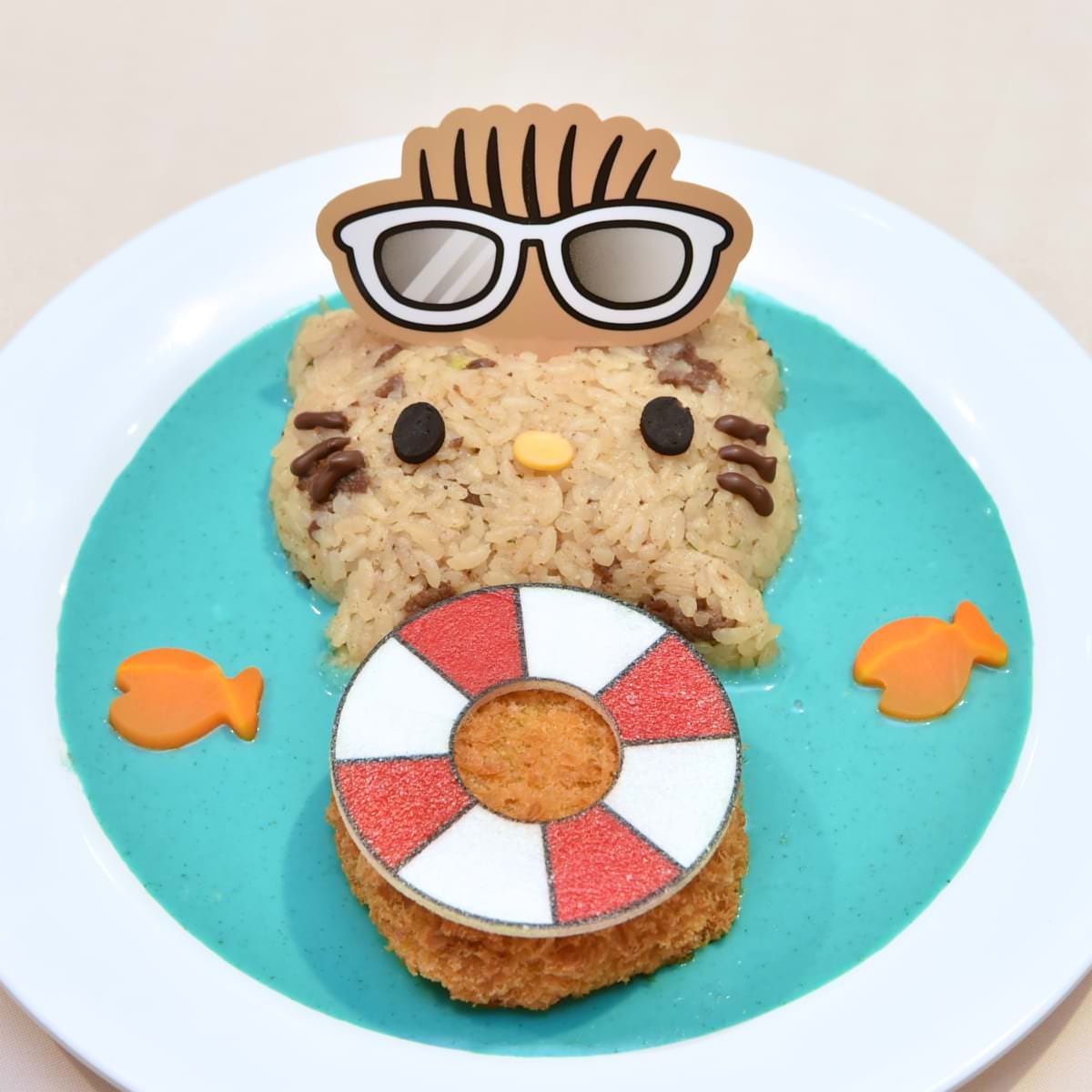 こんがり日焼けしたお顔は焼肉ピラフ、浮き輪の下にはジューシーなメンチカツが!