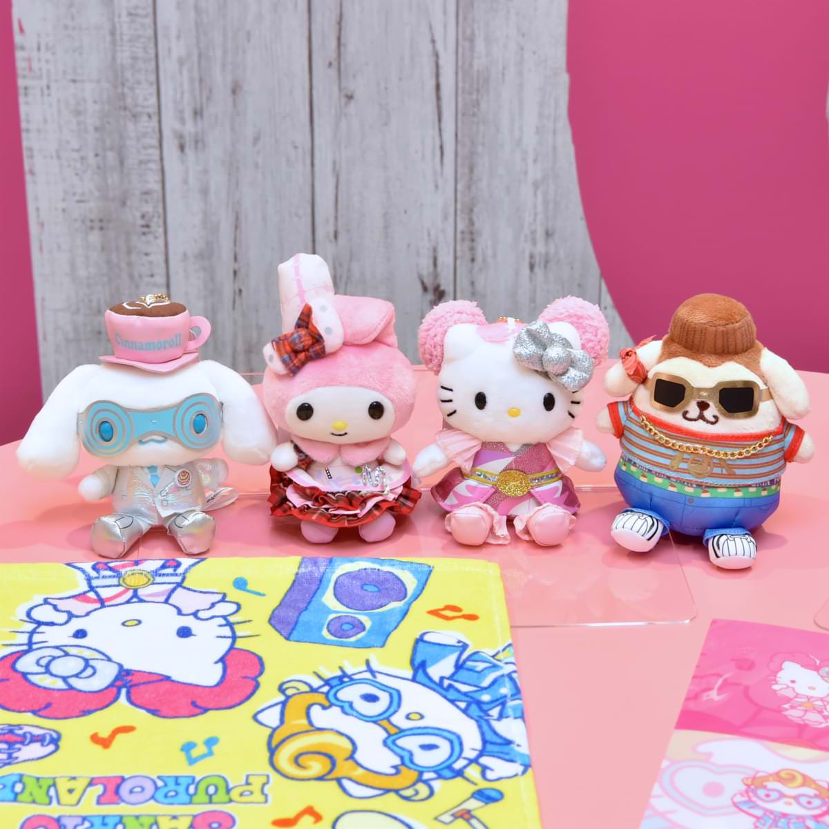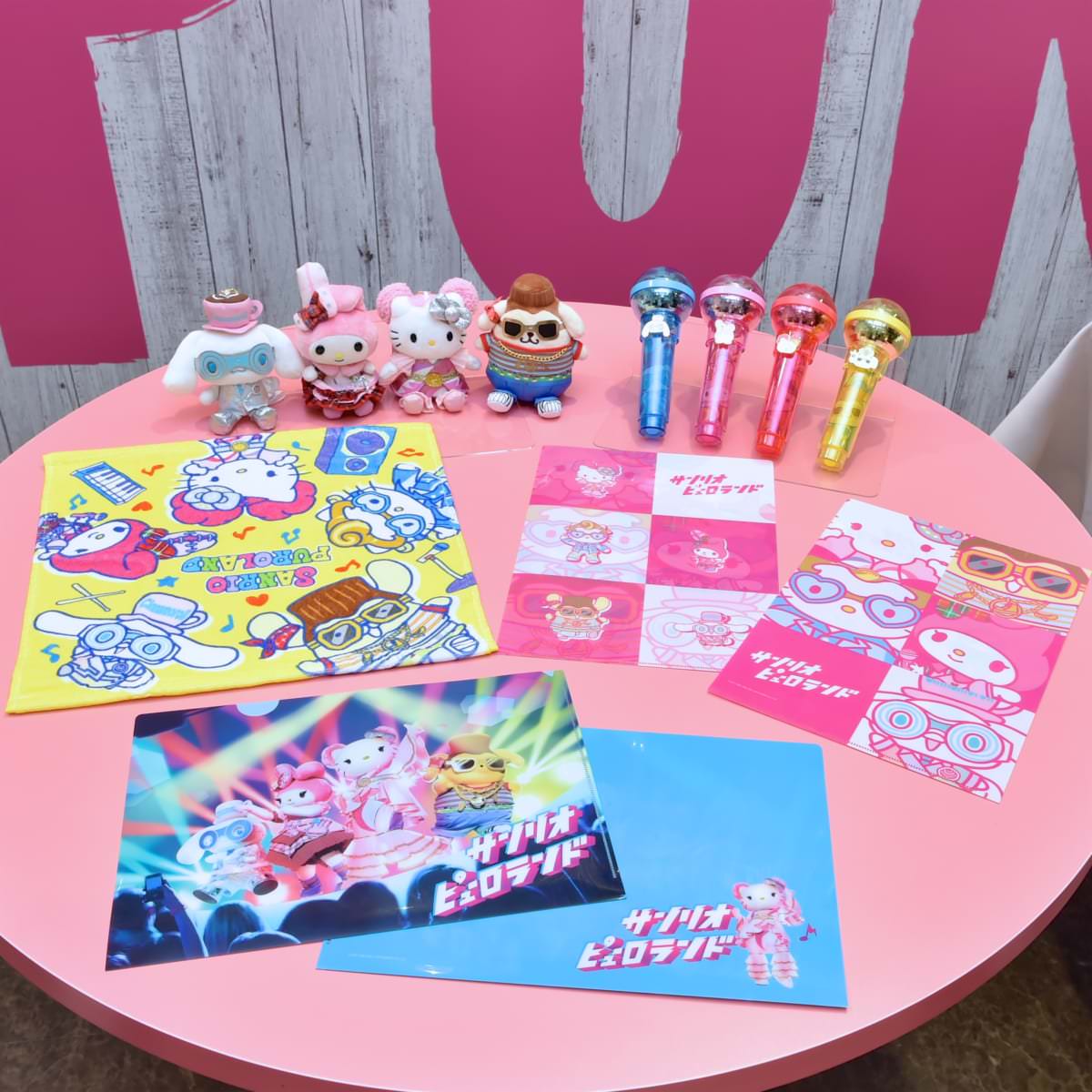 「ピューロ夏フェスLIVE!!!!」の登場コスチュームを着たキャラクターのマスコット(全4種)やクリアファイルなどキュートなグッズが盛りだくさん。
