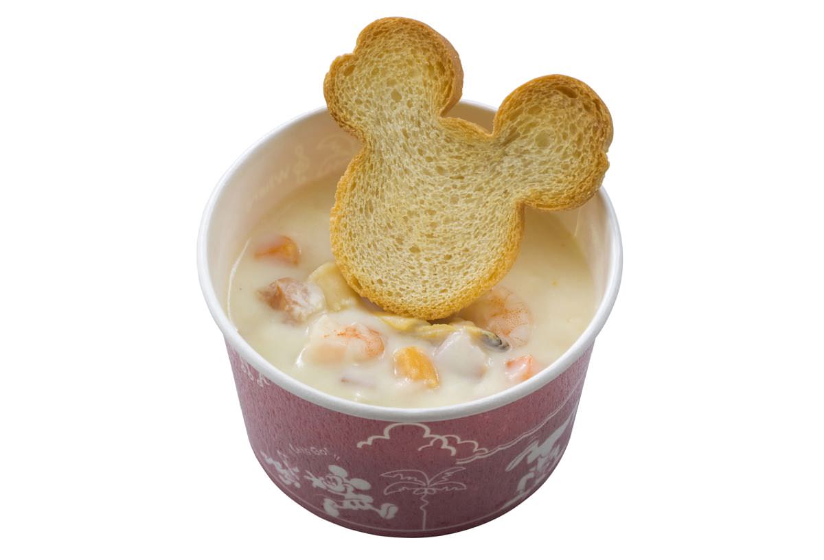 たっぷりのシーフードに、ミッキーシェイプのパンが可愛いアクセントになっています☆