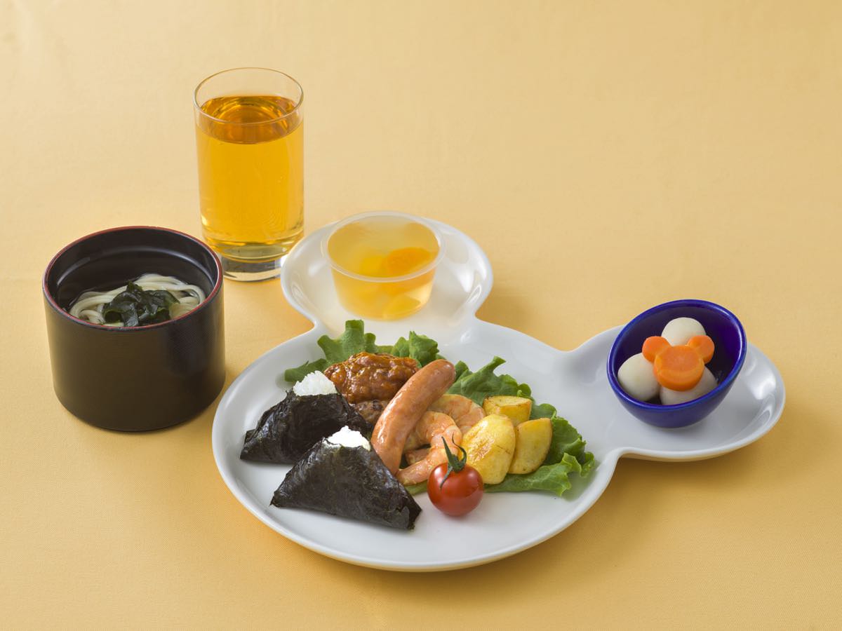 ミッキーシェイプのプレートに盛りつけられた「お子様セット」。