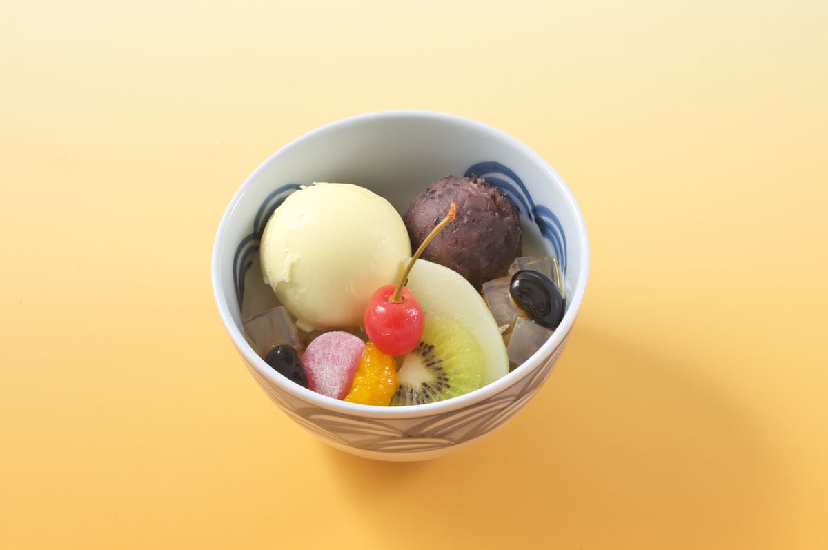 バニラアイスや寒天、あんこなどが入った「クリームあんみつ」