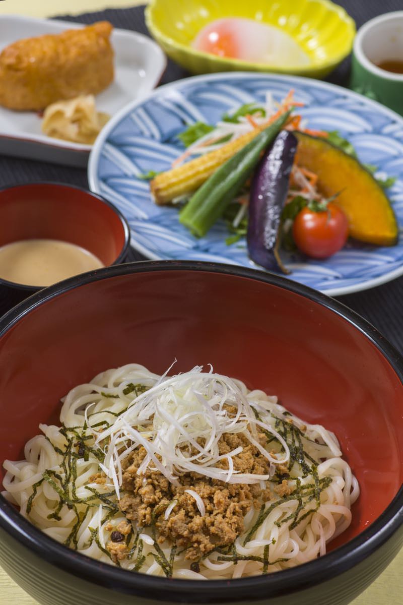 暑い日でも食べやすい「豚ひき肉の冷製胡麻だれうどん膳」