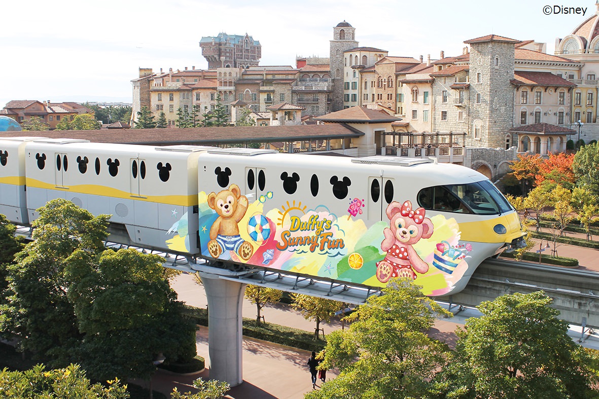水着に着替えたダッフィー&フレンズがモノレールの外装に描かれていて、東京ディズニーリゾートに訪れたゲストをお出迎えしてくれます。