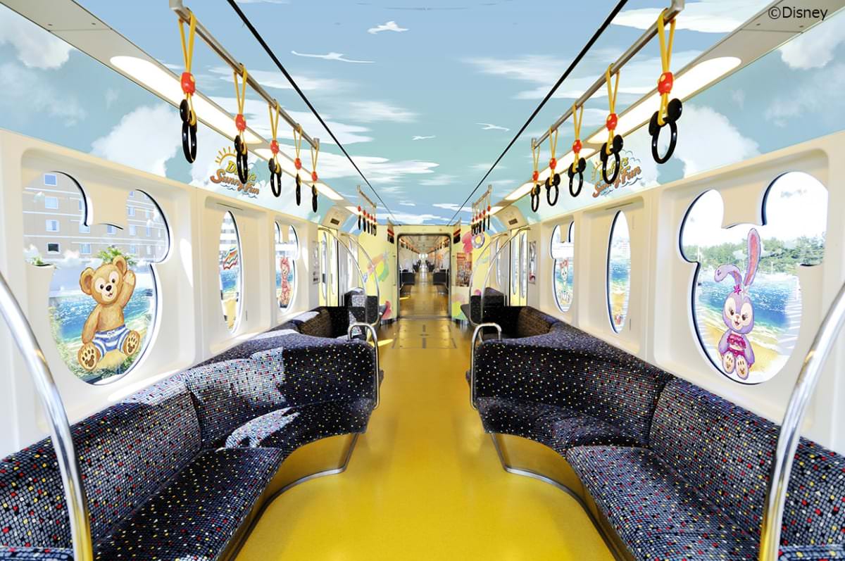 また、青空が広がる車内では、砂浜にいるダッフィーたちと一緒にディズニーリゾートラインの旅を楽しむことができます☆