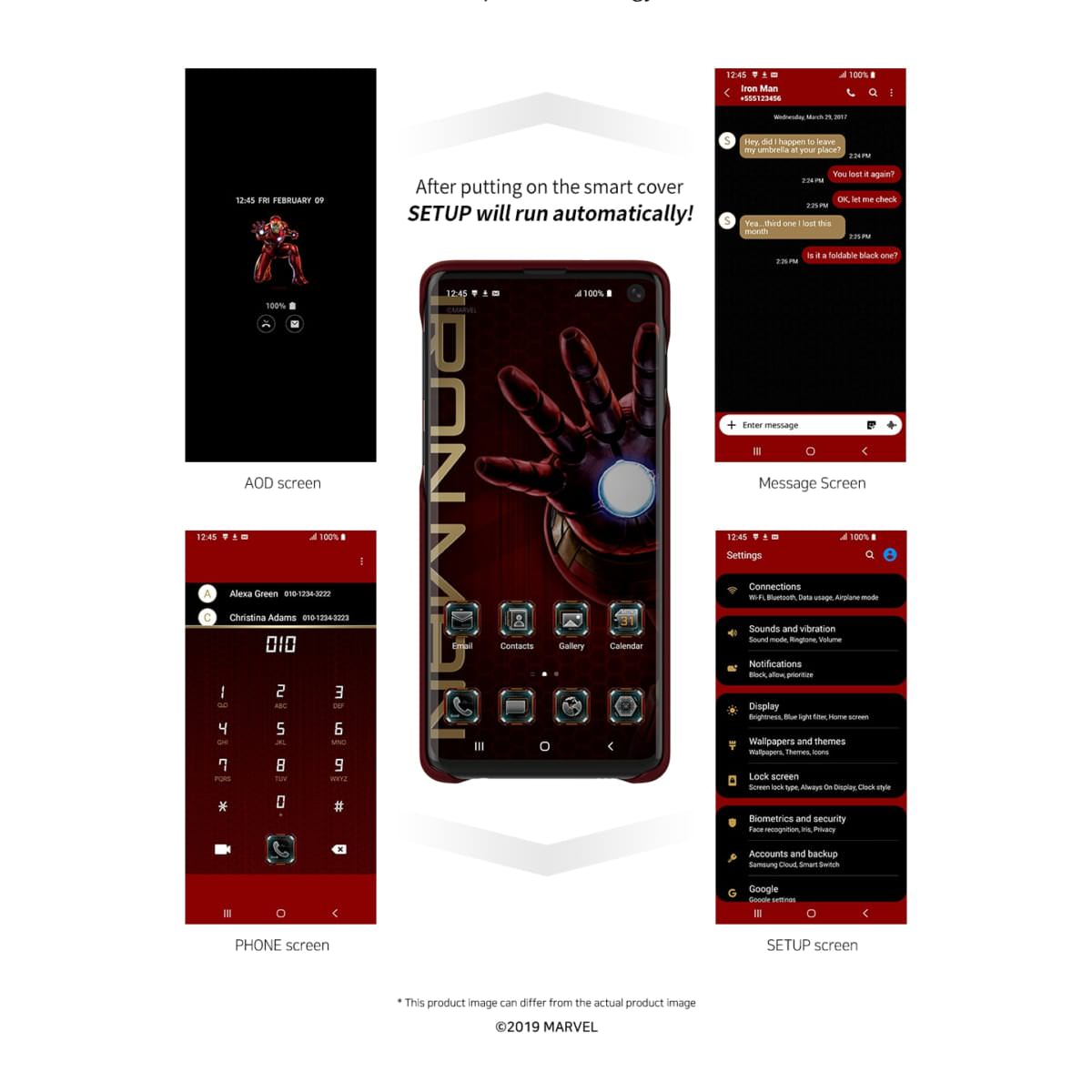 スマートフォンにカバーを装着することでリンクするUXと専用コンテンツも「アイアンマン」カラーで統一。