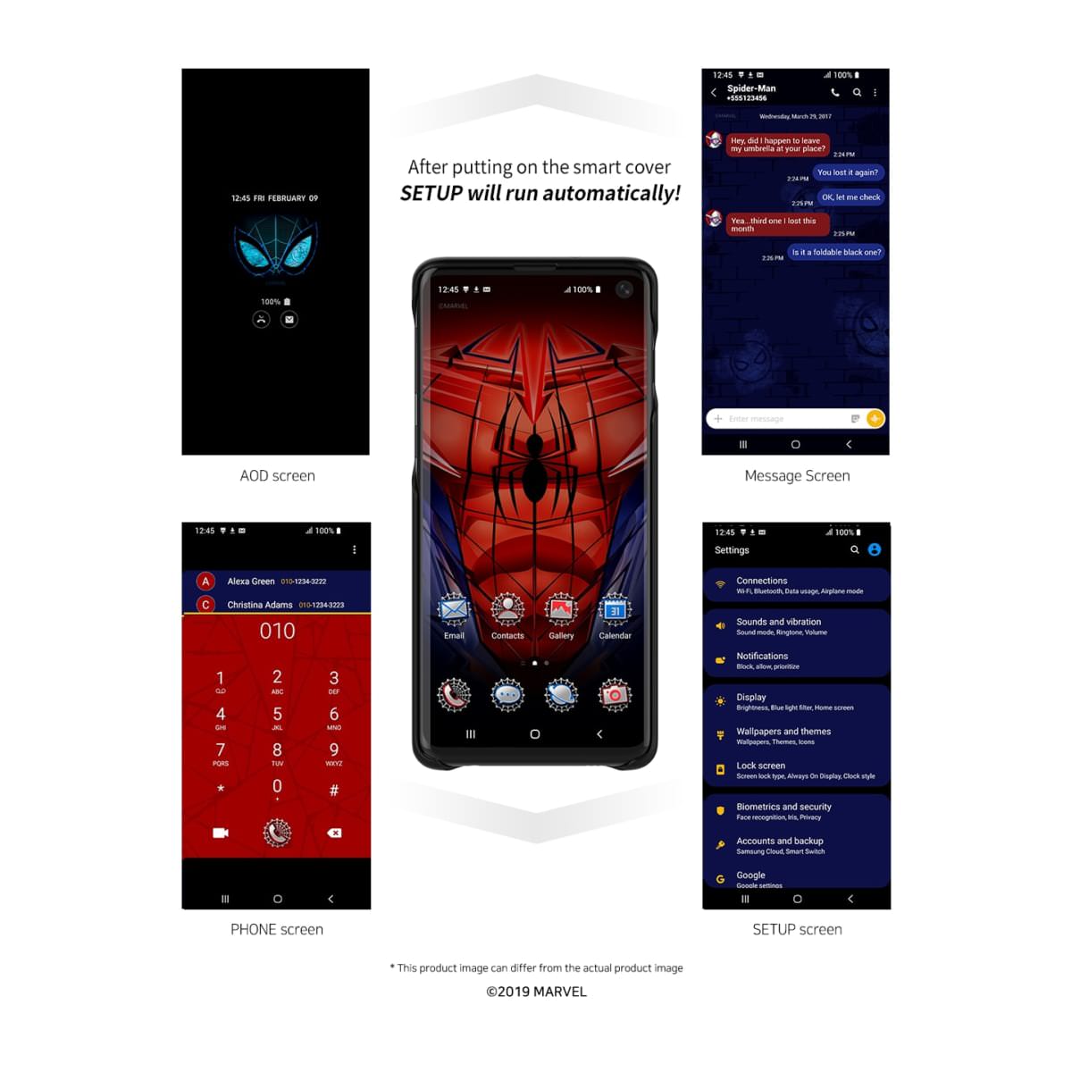 「MARVEL」の人気ヒーロー「アイアンマン」と「スパイダーマン」がモデルになった「Galaxy S10 | S10+」専用カバー。