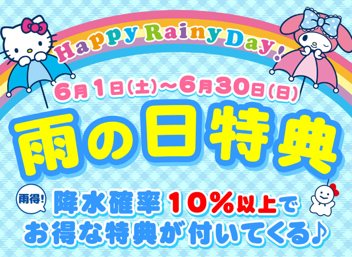 降水確率10%以上でおトクになる!サンリオ ハーモニーランド「雨の日特典」