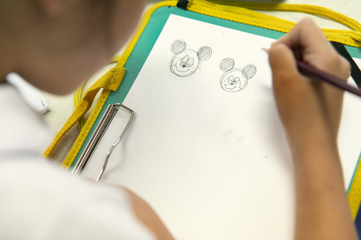 最後はいよいよ、子どもたちが自身の想像力を発揮して「ミッキーマウス」を描きます。