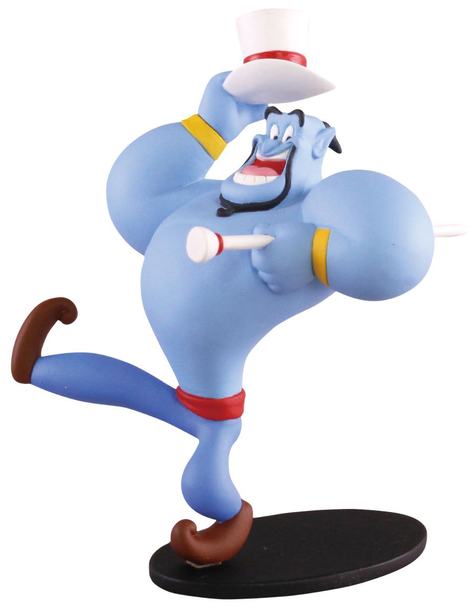 シルクハットとステッキを手に持った、ご機嫌な表情の「ジーニー」のフィギュア。
