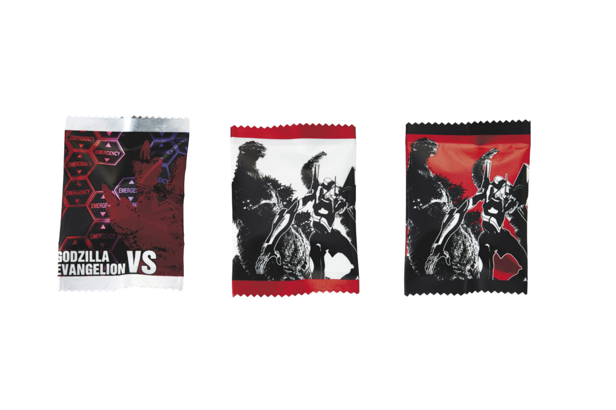 パッケージは、ブリキの地色にモノクロで浮かぶゴジラとエヴァンゲリオンがカッコいいですね!