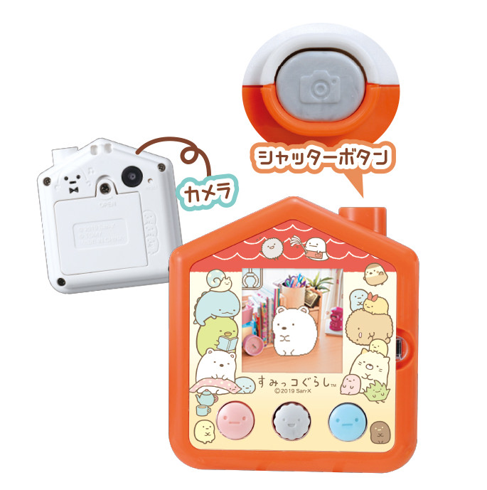「すみっコ」たちをさがして写真を撮影したり、お世話あそびやゲームといった遊びを簡単な操作で楽しむことができるおもちゃです。