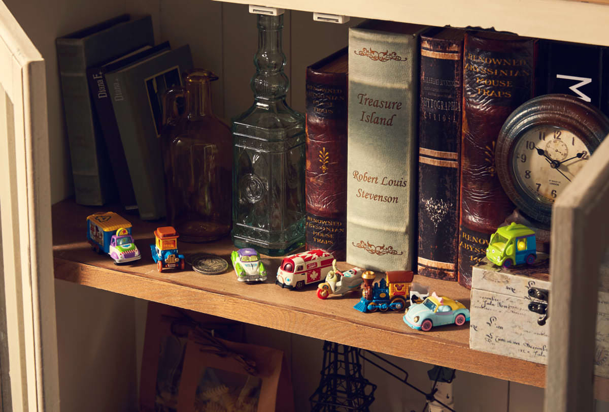 コンテナにしまったモータースをいつでも眺めることができるので、キャリーの可愛らしさとモータースの可愛らしさの両方を楽しめるのがポイント。