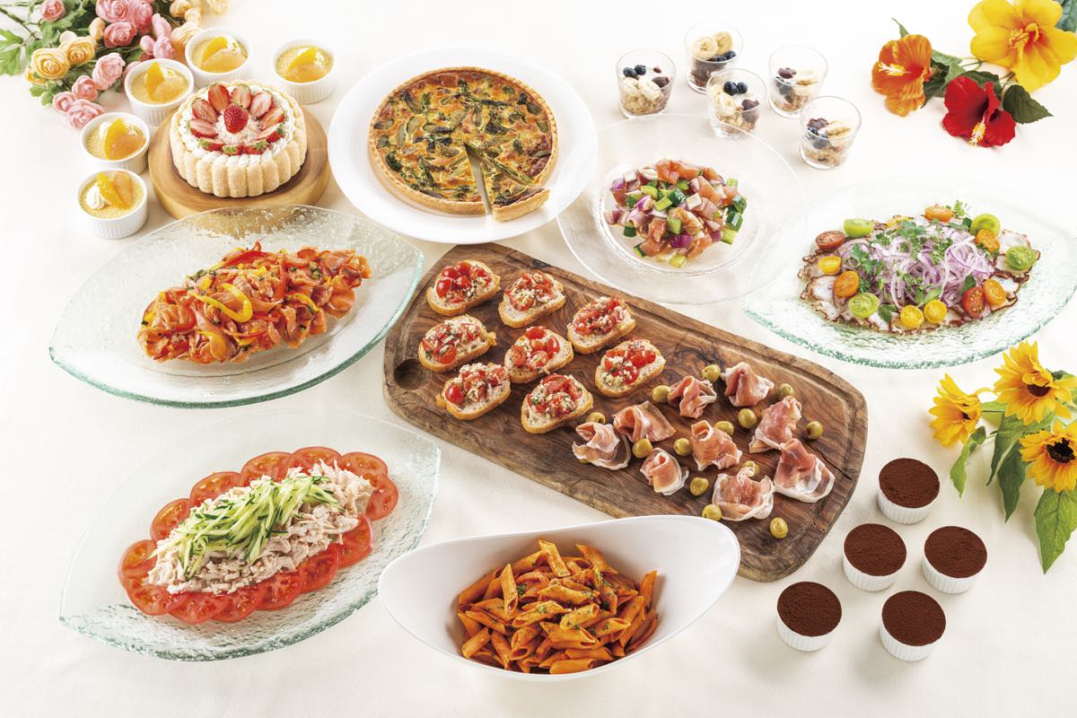 アヒポキ(ハワイ)、キッシュロレーヌ(フランス)、マリネサーモン(フランス)、ブルスケッタ(イタリア)、プロシュート(イタリア)、タコス(メキシコ)、棒棒鶏(中国)、ヤム・ウン・セン(タイ)、生春巻き(ベトナム)、セビーチェ プルプ(ペルー)、サラダバー