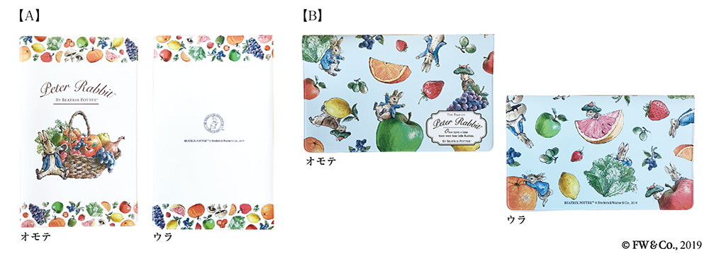果物や野菜が入ったバスケットに寄り添うピーターデザインと、ピーターとベンジャミンバニーが楽しそうに遊びまわっているデザインの2種類です。
