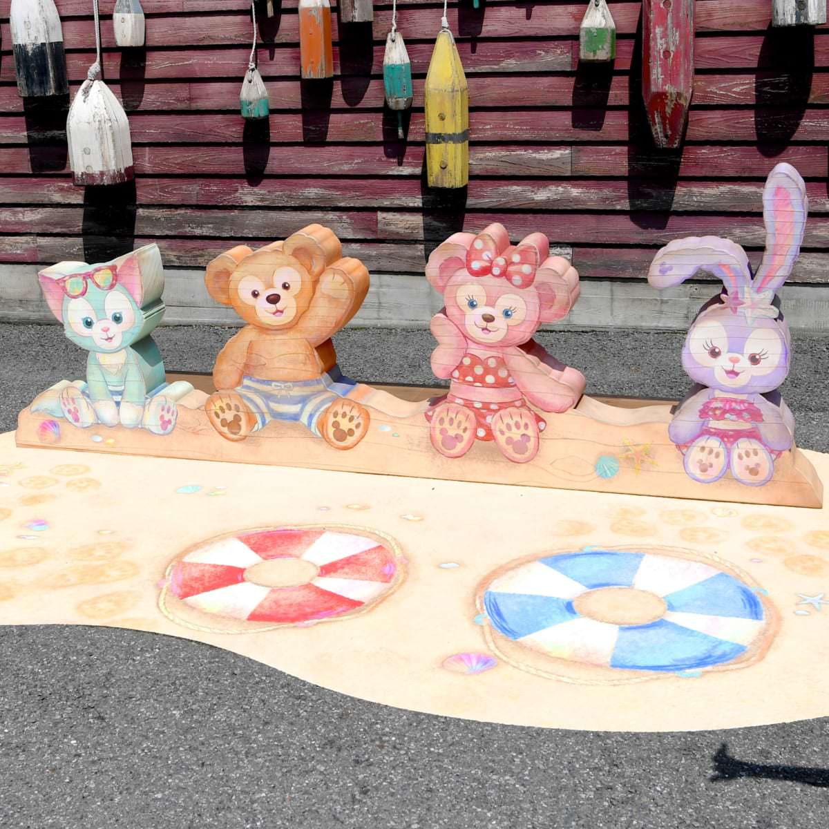 かわいい水着姿の「ダッフィー」たちと一緒に写真を撮ることができます。